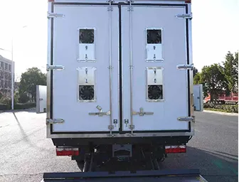 Cargo Box Configuration: Side air ducts and protective plates added inside the cargo box, dual-temperature refrigeration unit with heating, 4 ventilation windows on each side, 4 exhaust fans on each rear door at the top of the cargo box, removable stainless steel rack added